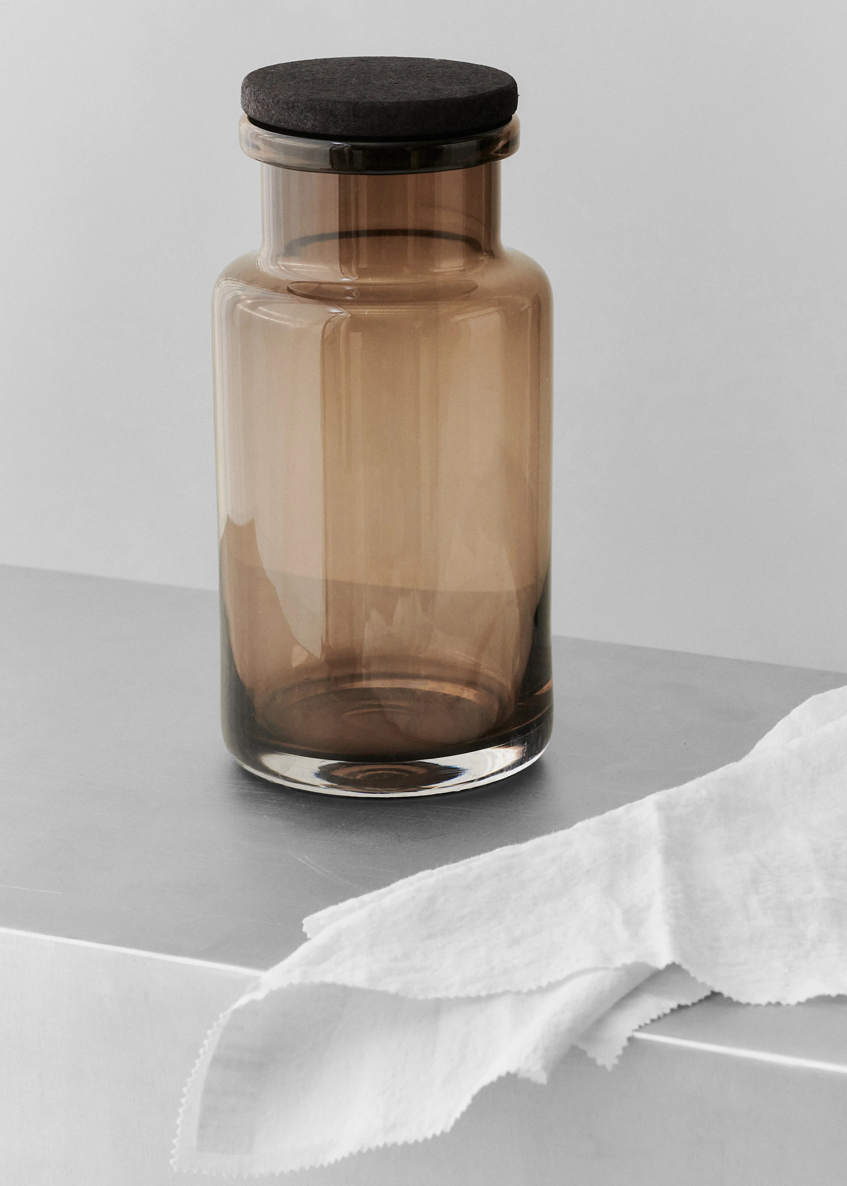 Simplistic yet functional, our Glass Container intriguingly stores dry foods, vegetables or even personal belongings - be it in the kitchen, the office or a common room. Each glass container is paired with a black-stained cork lid.
